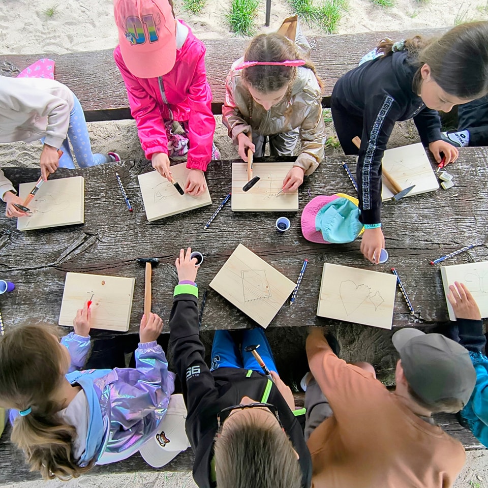 Wśród zajęć warsztatowych proponujemy do wyboru: malarstwo, StringArt, rzeźbiarstwo, majsterkowanie, budowanie zegara, zajęcia kulinarne, zajęcia pszczelarskie itp.