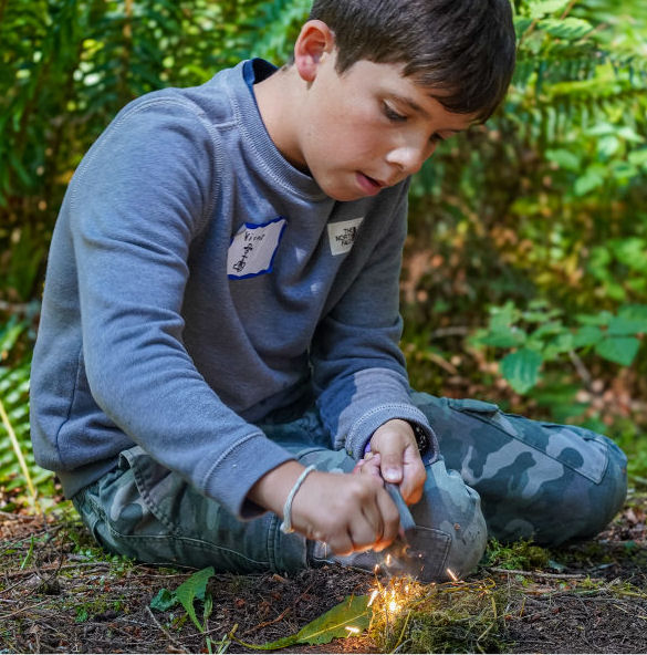 Poznajemy rodzaje ognisk i rozpalamy je za pomocą krzesiwa, uzdatniamy wodę i gotujemy na ogniu, budujemy szałas, biegamy na orientację, organizujemy leśne podchody i wiele innych